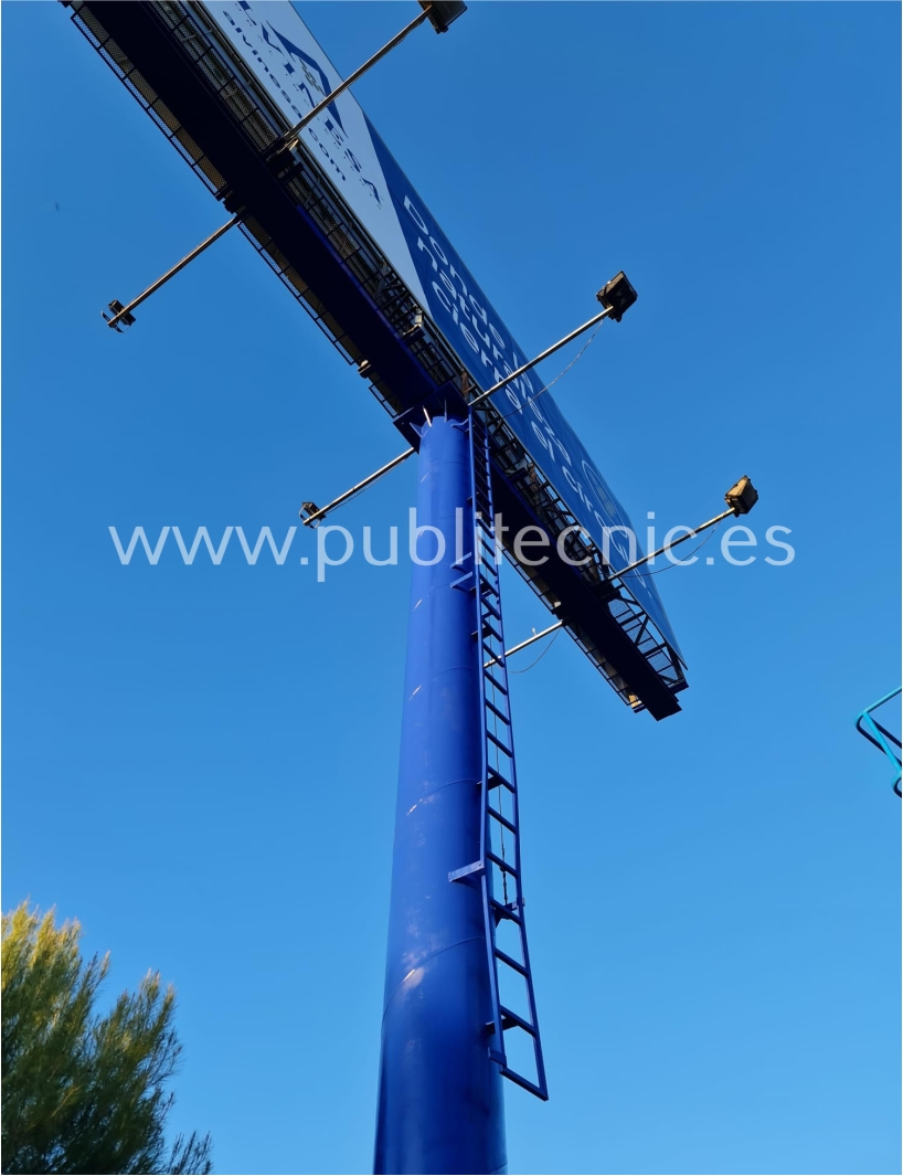 NUEVO MONTAJE DE MONOPOSTE Hoy os traemos un Monoposte de 25 metros de altura coronado por un cabezal superior de cajón de luz interior. El cabezal superior está compuesto por una estructura de acero que sujeta dos cajones de luz interior. Todos los materiales utilizados para la fabricación...