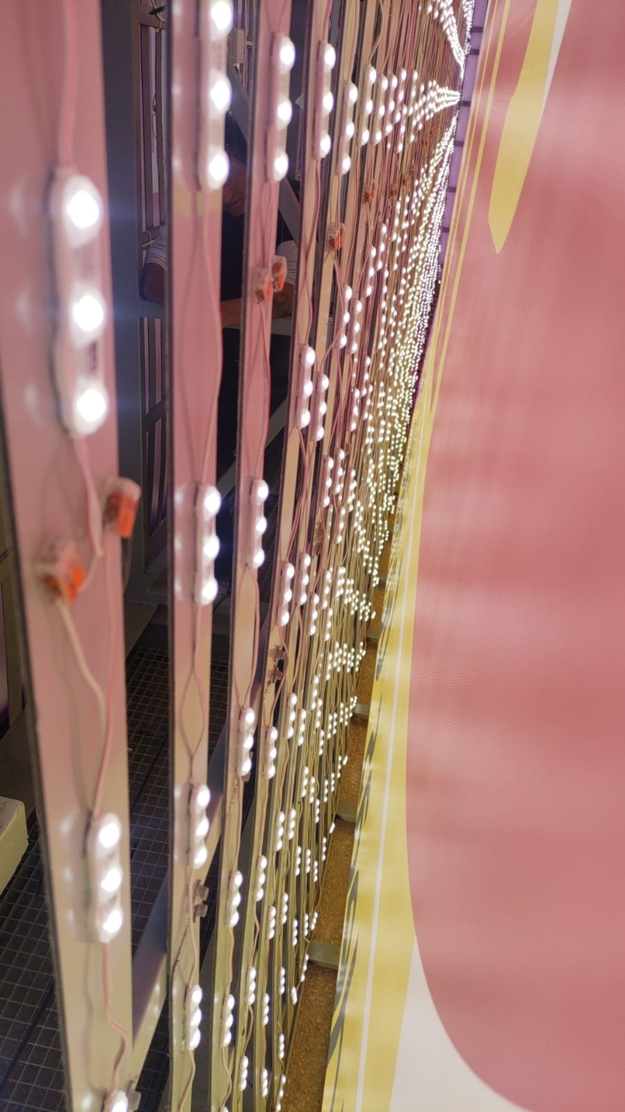 El cabezal superior está compuesto por una estructura de acero que sujeta dos cajones de luz interior.
