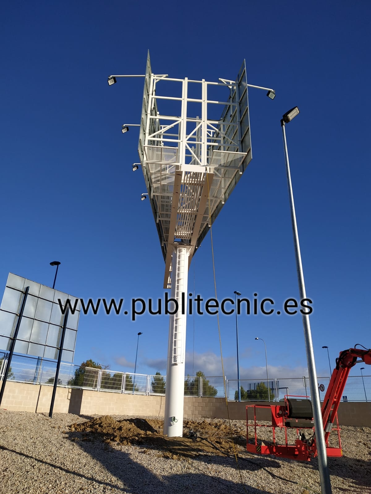 Otra característica es que, el monoposte se encuentra iluminado mediante proyectores LED instalados en la parte superior por normativa lumínica.