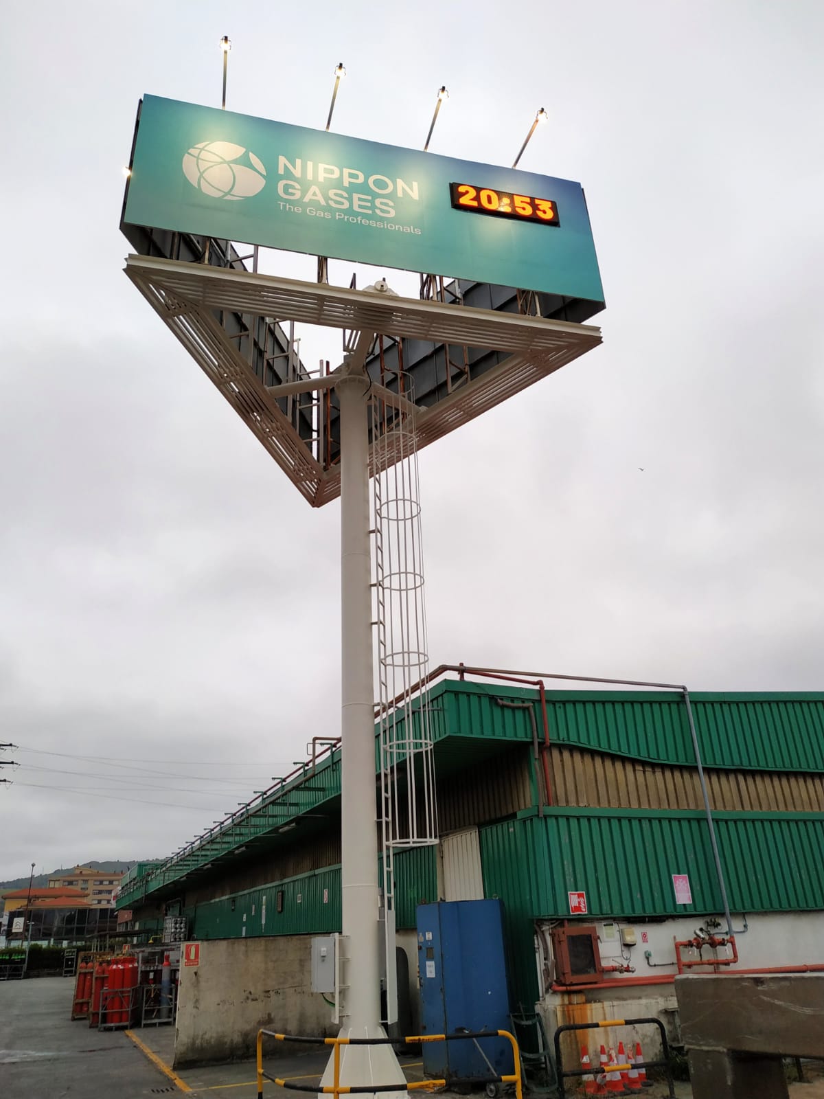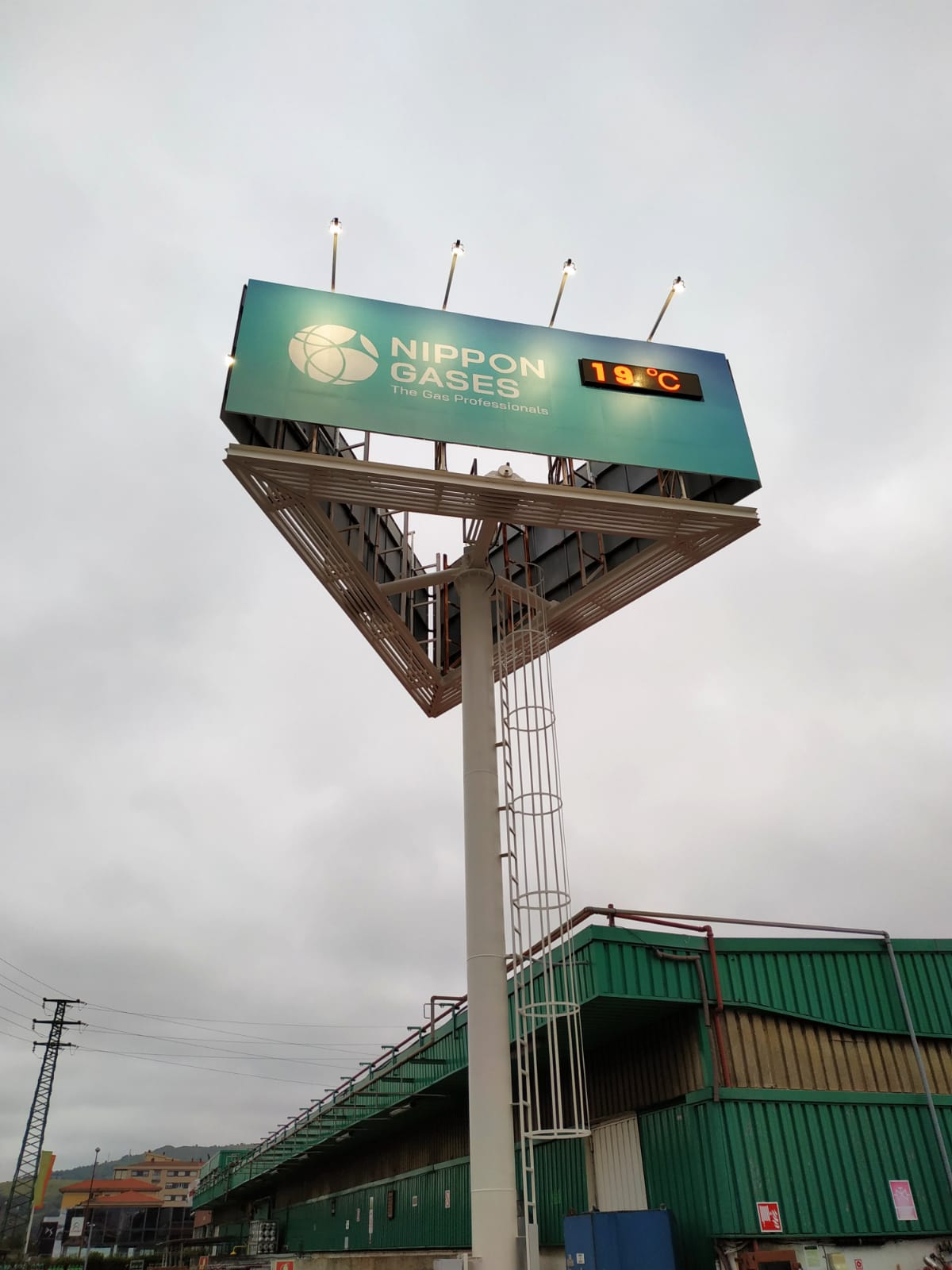 La empresa Nippon Gases, confía en nosotros para la fabricación, instalación y mantenimiento de su imagen exterior con este monoposte publicitario en Bilbao.