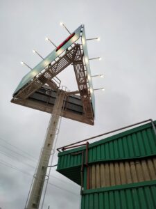 El monoposte publicitario en Bilbao, cuenta con  15 metros de altura coronado por un cabezal tricara de 8×3 metros