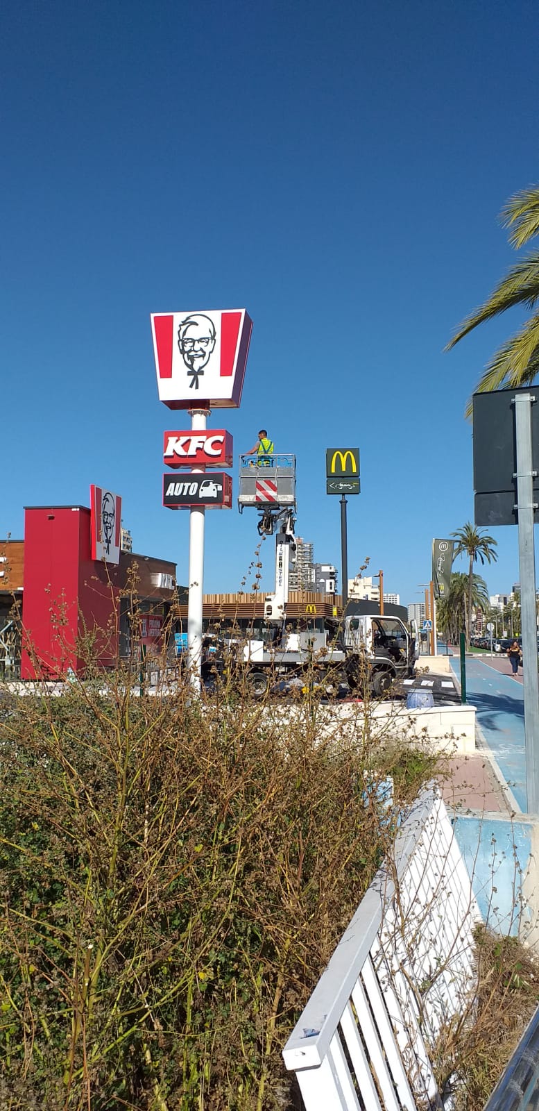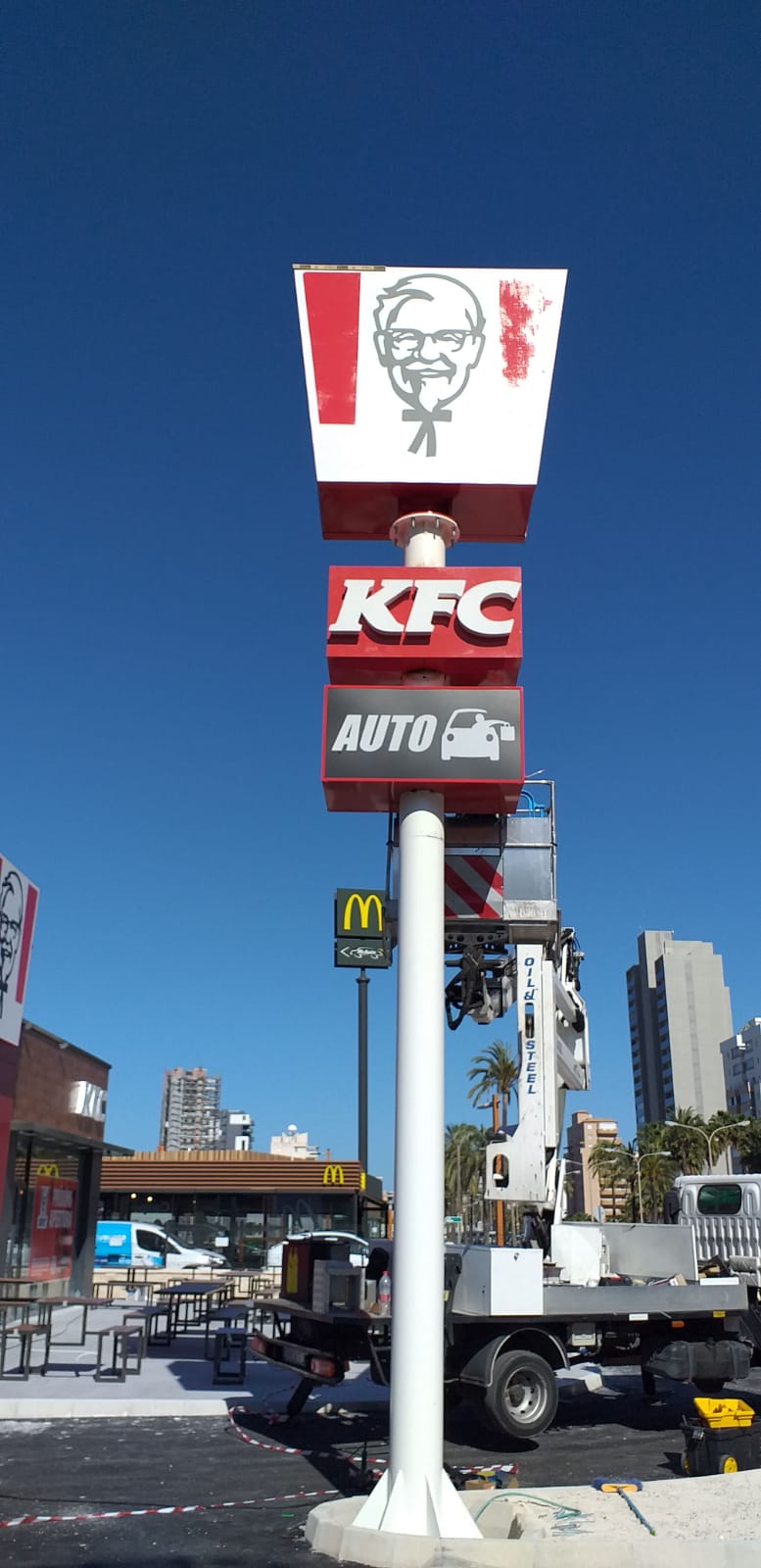 La empresa KFC cuenta con Publitecnic para la fabricación y el montaje de un monoposte publicitario.