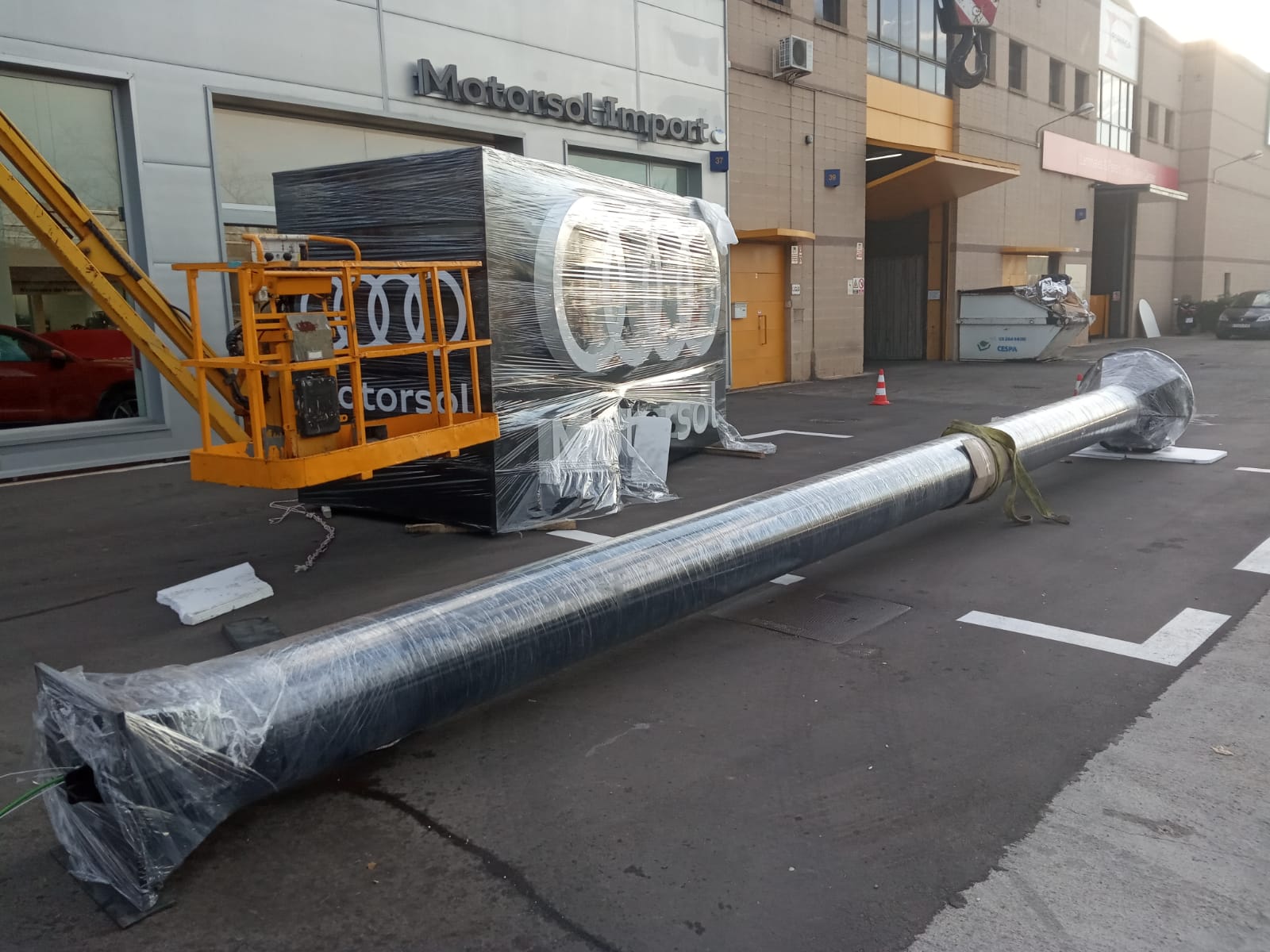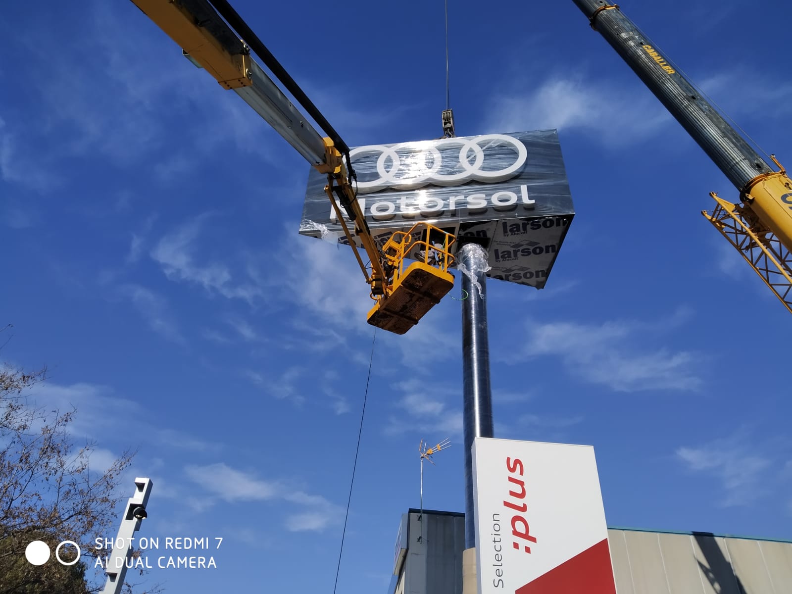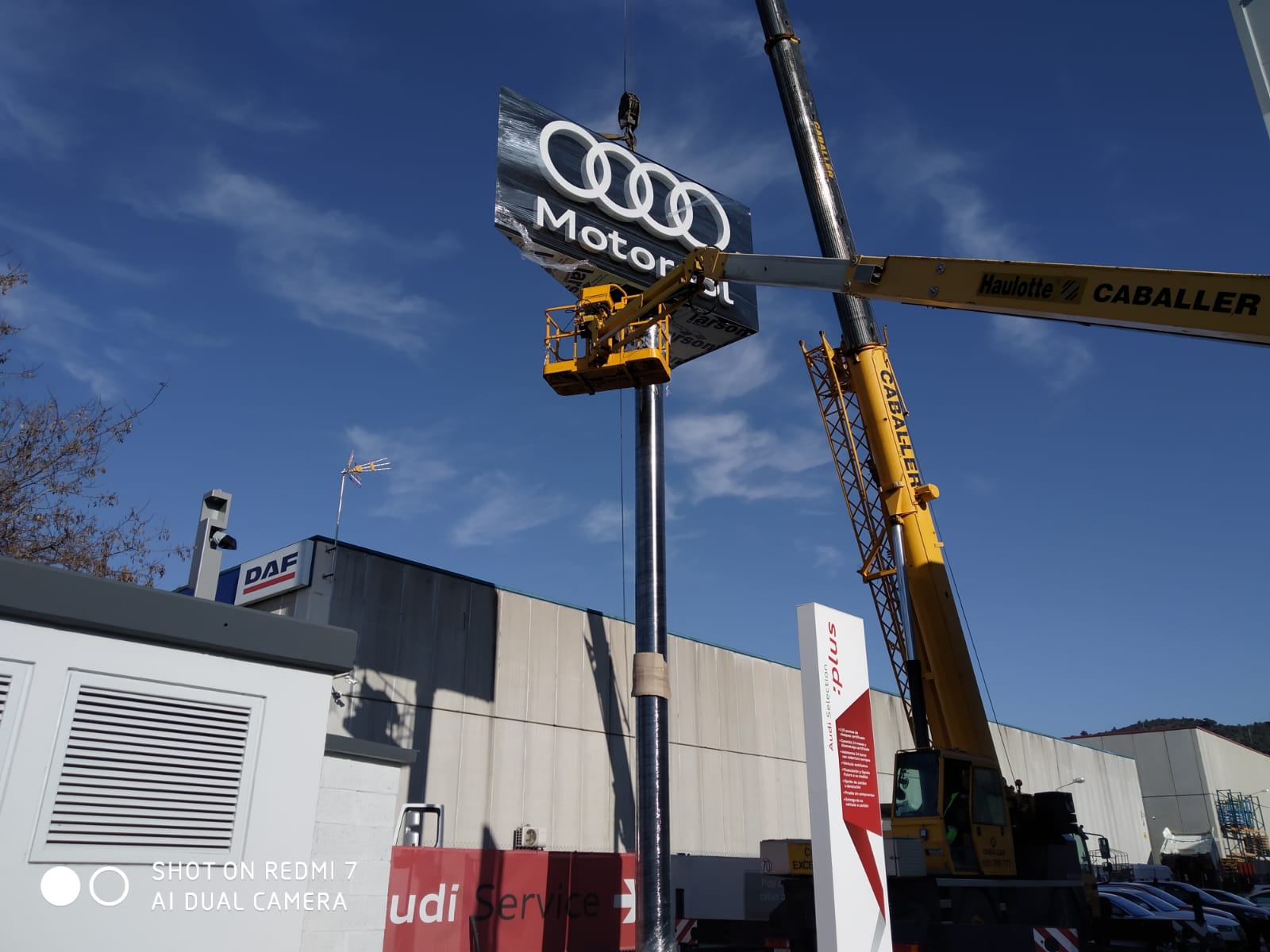 La multinacional AUDI cuenta con Publitecnic para la fabricación y montaje de su Monoposte Corporativo.