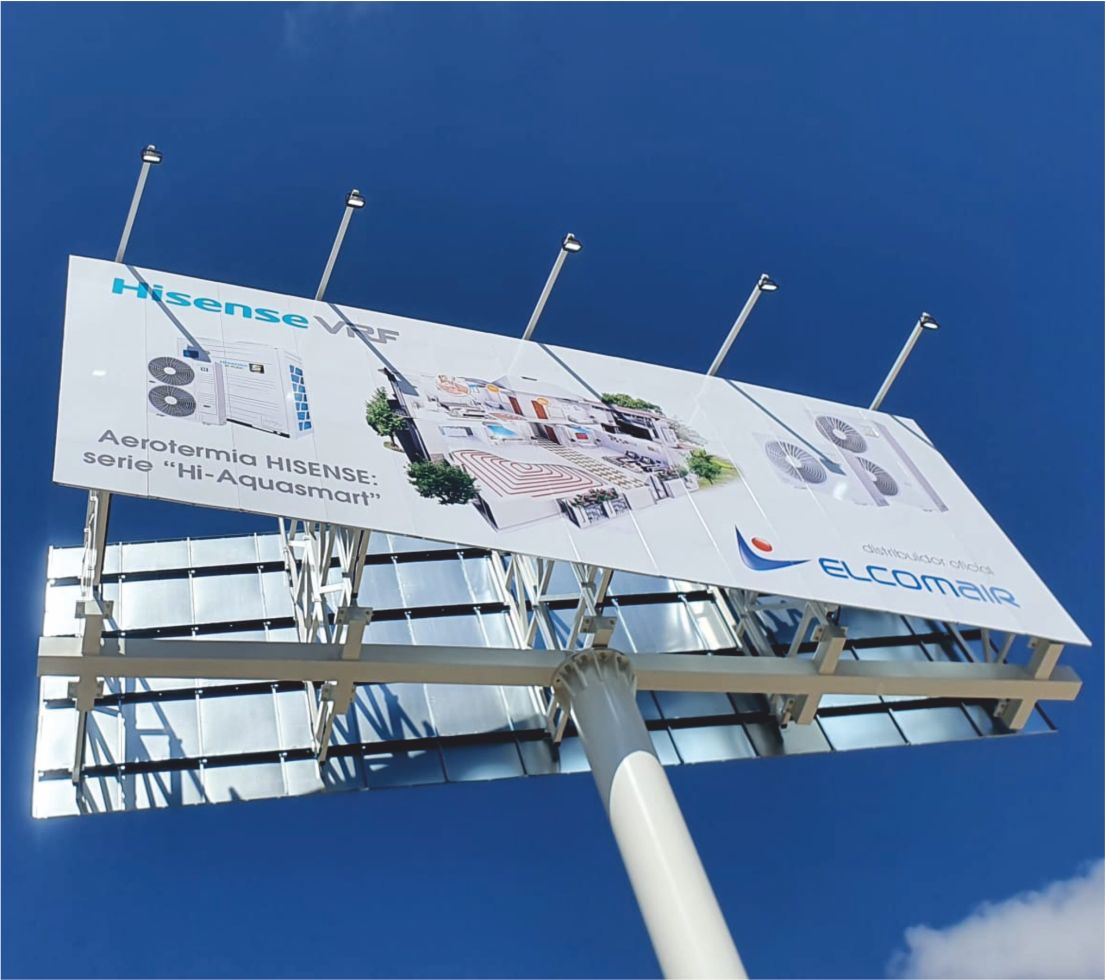 Nuevos montajes, dos Monopostes instalados con la imagen de Samsung y Hisense que confían en Grupo Publitecnic para la instalación de estos soportes publicitarios.