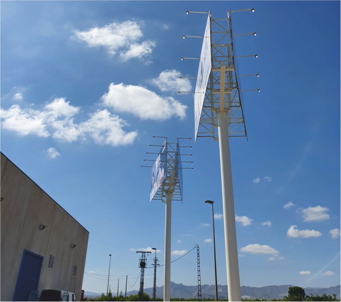 Se trata de 2 monopostes publicitarios formados por fustes de 16 metros de altura.
