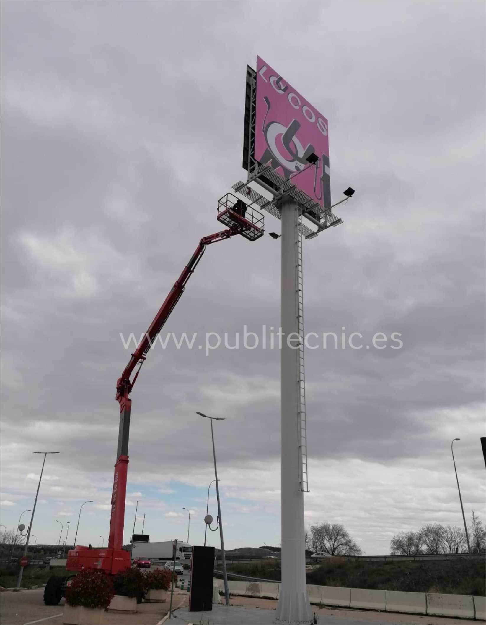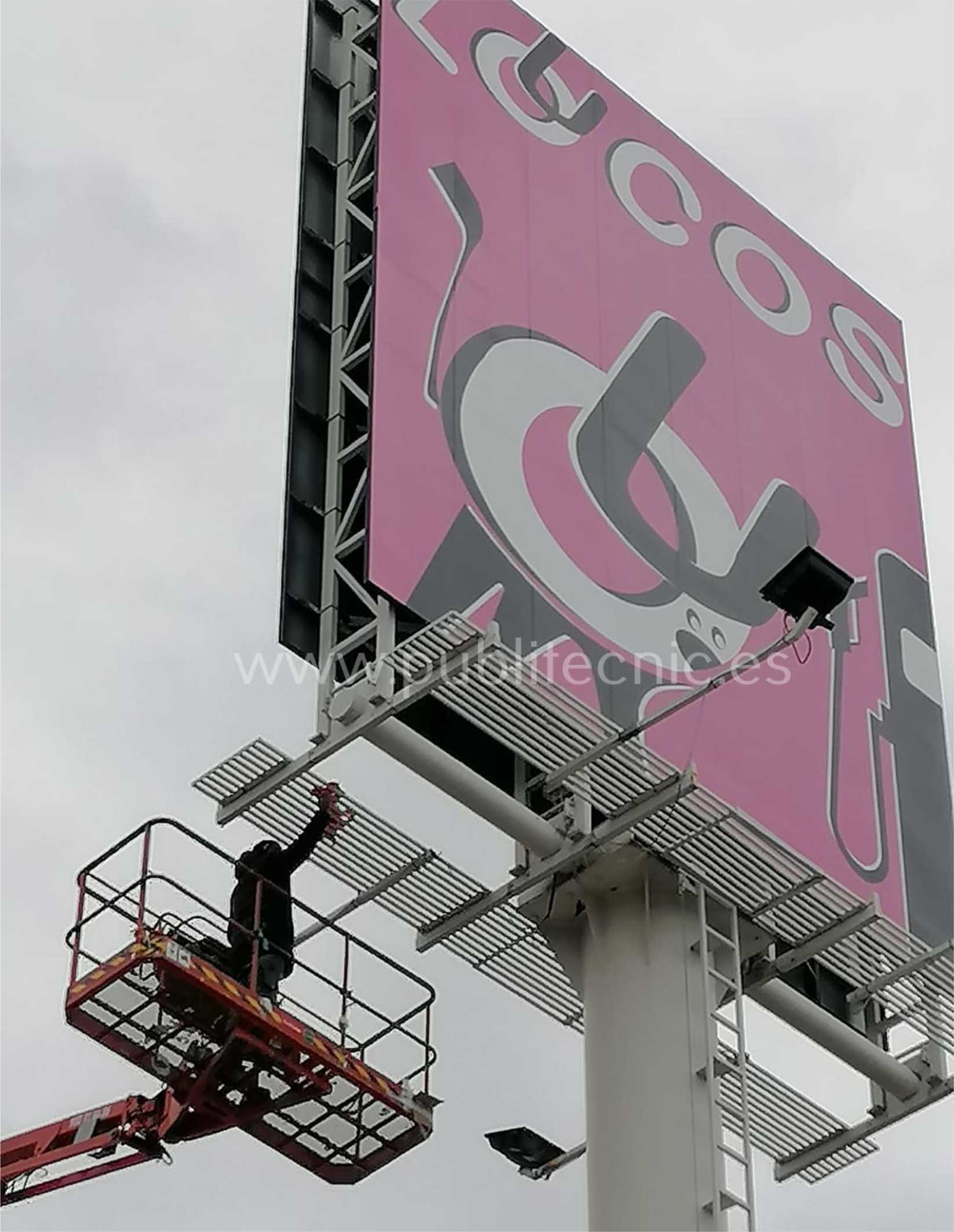 Para la rotulación de este monoposte publicitario se ha utilizado vinilo de corte de larga duración.