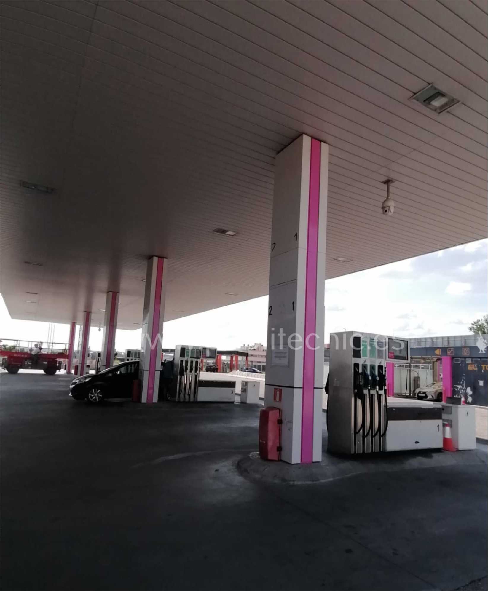 Por otro lado, hemos personalizado con la nueva imagen la marquesina superior y pilares de la gasolinera, así como todos los elementos que conforman la misma.