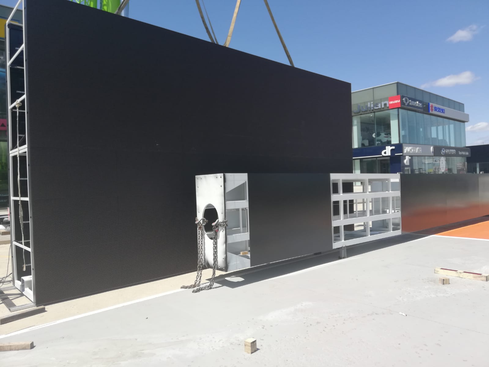 El modelo de pantalla elegido para este monoposte es una Pantalla Led para exterior P10 DIP alto brillo.